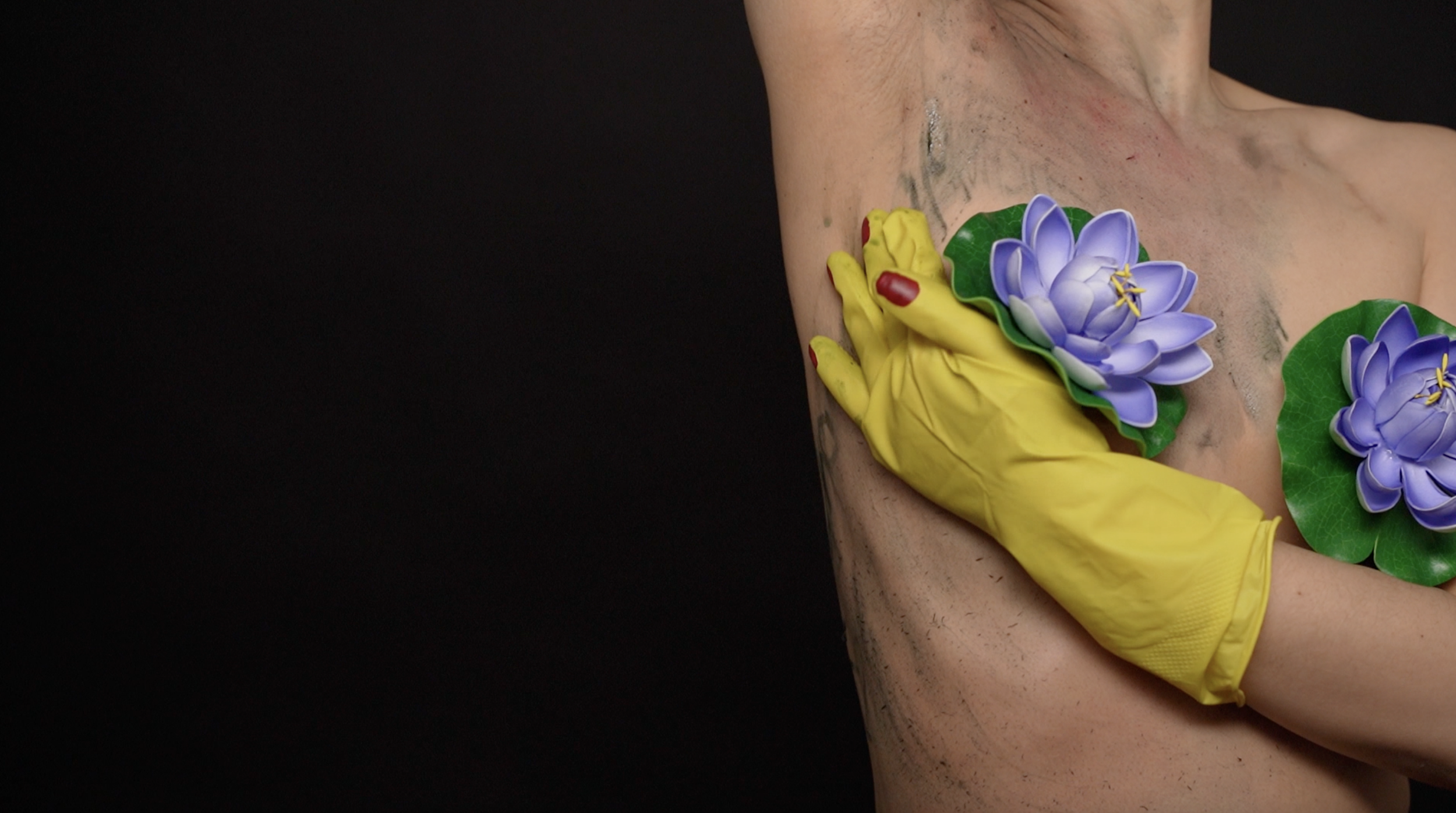 The work is part of a video series Lotusfrau, which examines speculative histories of women’s labor across contexts, including Asian and diasporic figures, and the ways feminized bodies and roles have been marginalized, racialized, and sexualized within patriarchal systems.